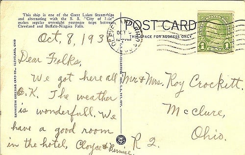 But you could do something a little cheaper then sending a letter in an envelope, you could instead send your message on a postcard. This was a small card that often had a picture on one side and space on the back for a short message plus addresses and postage. (My marketing person told me that people don’t know what a postcard is or how it is used. I’m such an old fuddy duddy.)